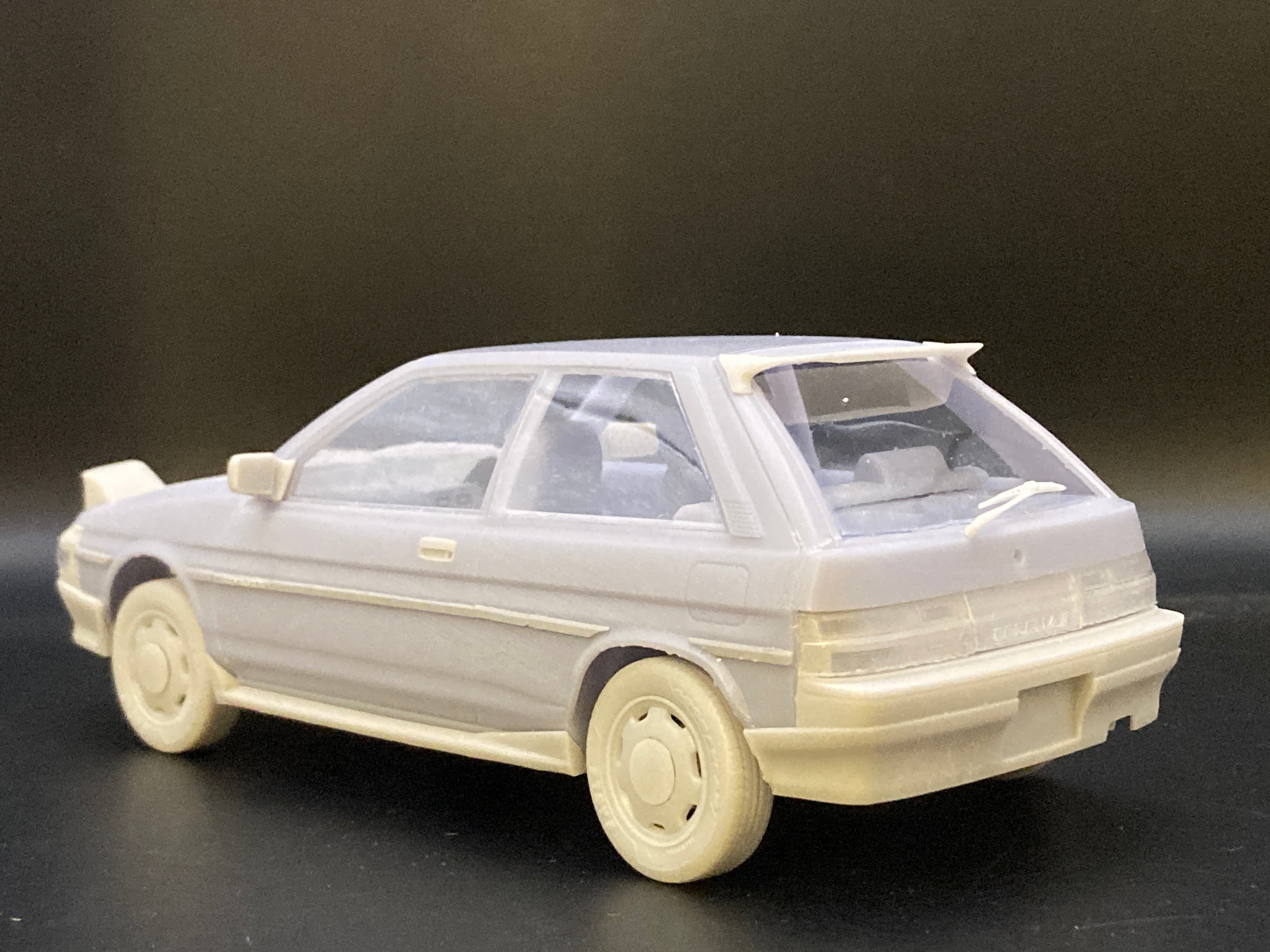 1980年代のリトラクタブルライトホットハッチの3Dプリンター製ガレージキットです。
