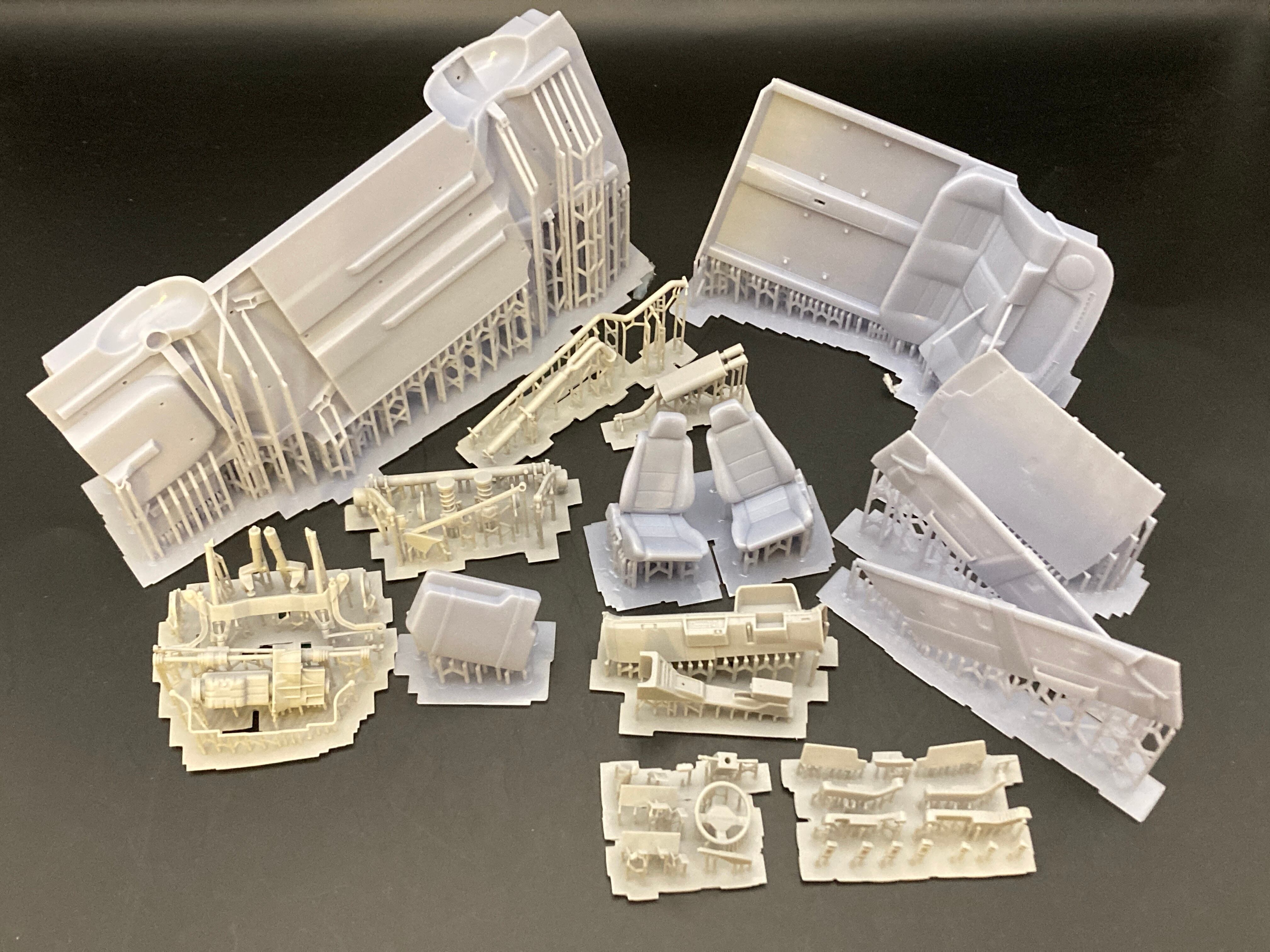 プラモデルと異なり脆い素材ですのでサポートをつけたまま発送します。良く切れるニッパーや超音波カッターなどで丁寧に切り出す必要があります。